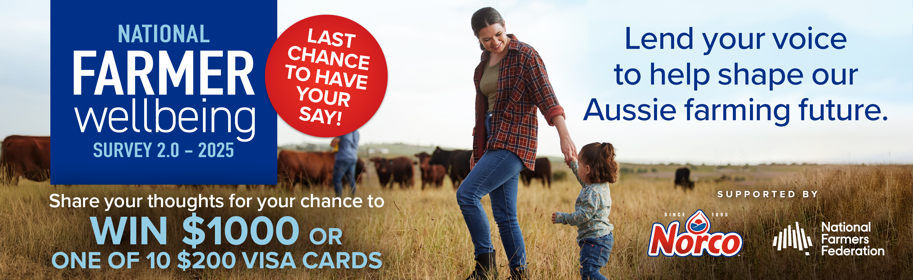 Australia’s farmers are the backbone of our nation—and their wellbeing matters. That’s why Norco, in partnership with the National Farmers’ Federation, is proud to support the next chapter of the National Farmer Wellbeing Report.